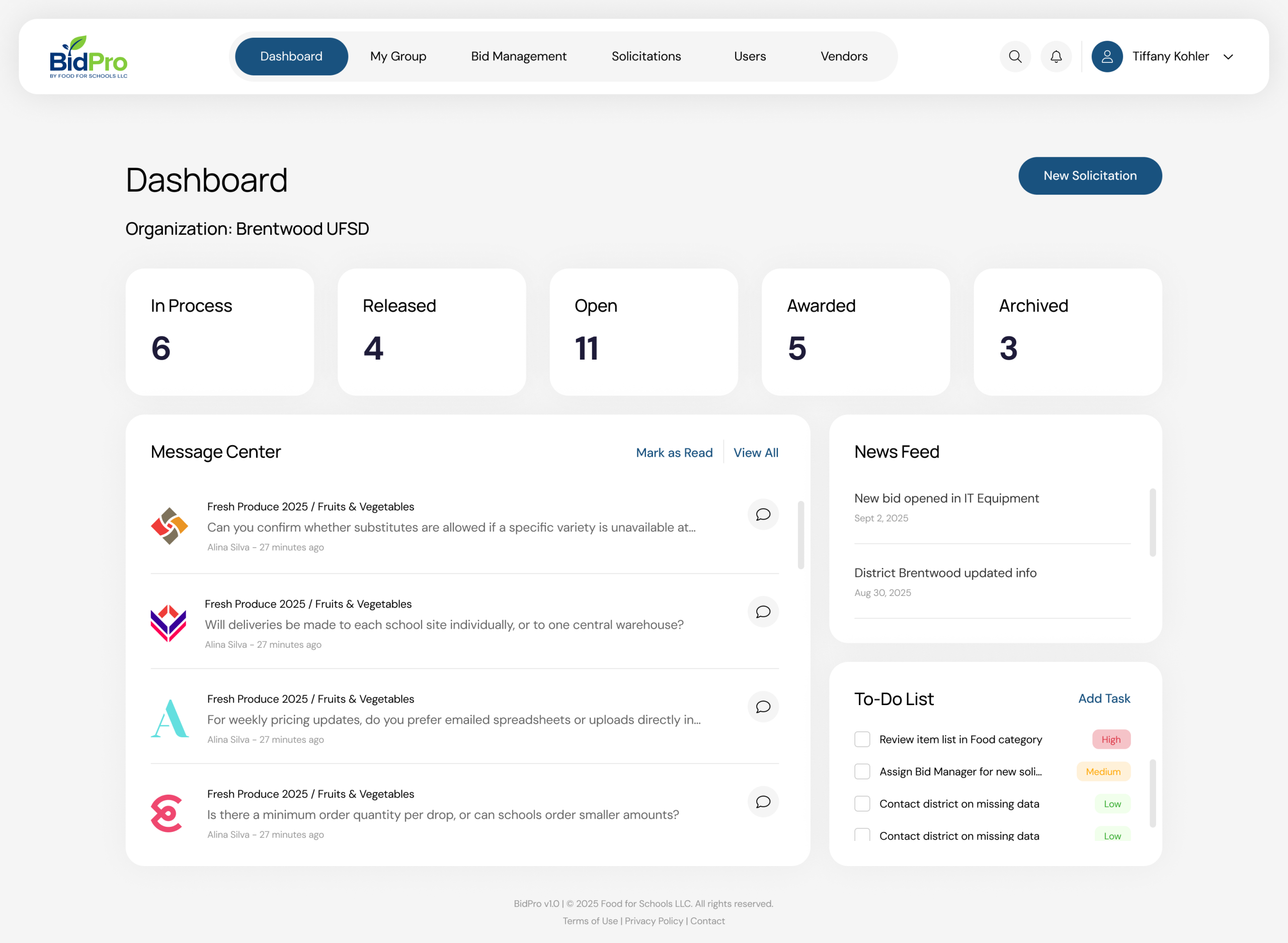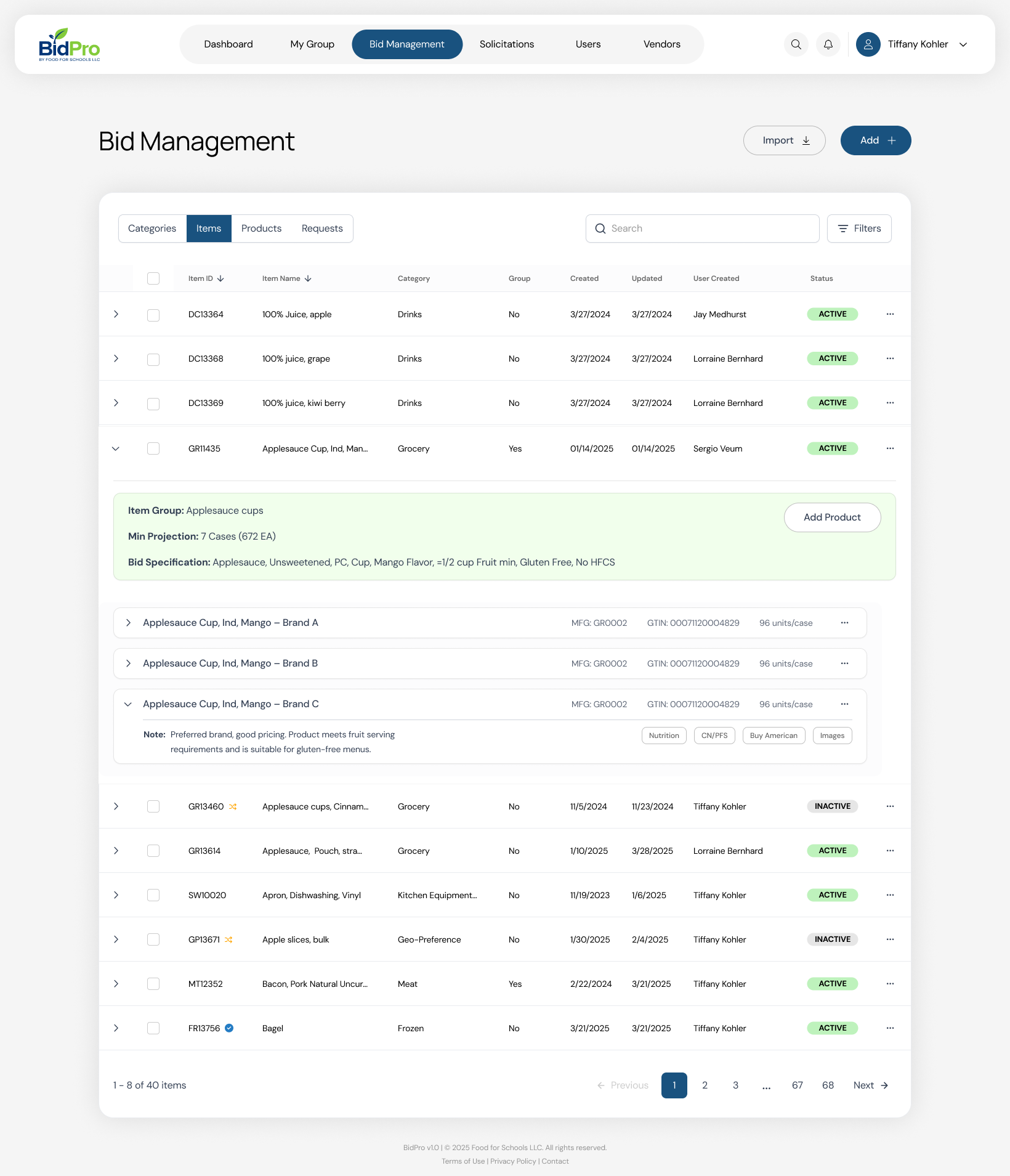 Built by Food for Schools, LLC, a leader in K12 food procurement since 1999, BidPro simplifies purchasing for districts and groups, created by Tim Goossens, SNS, Founder of Food for Schools LLC.